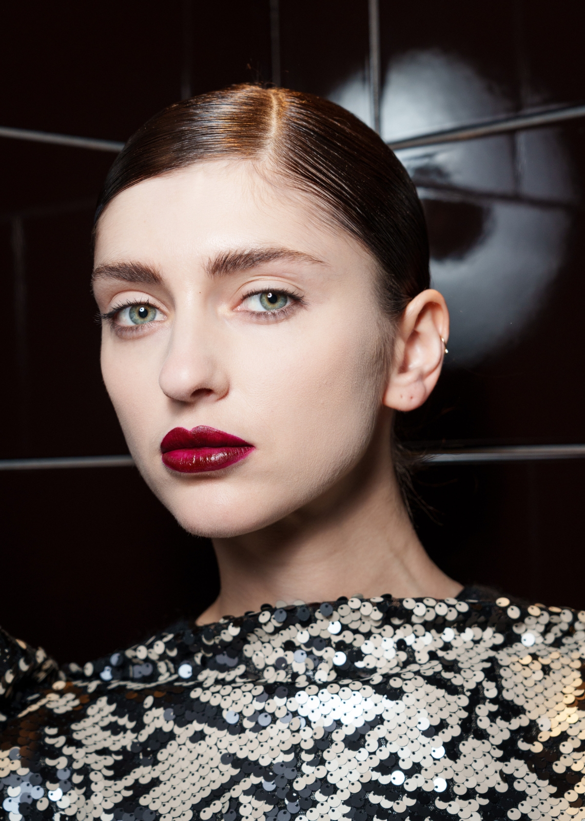 O segredo para um sleek back que sobreviva às festas mais animadas está nos produtos usados. Para manter o cabelo seguro, neste caso solto e penteado para trás, utilize gel, espuma ou laca de fixação forte.