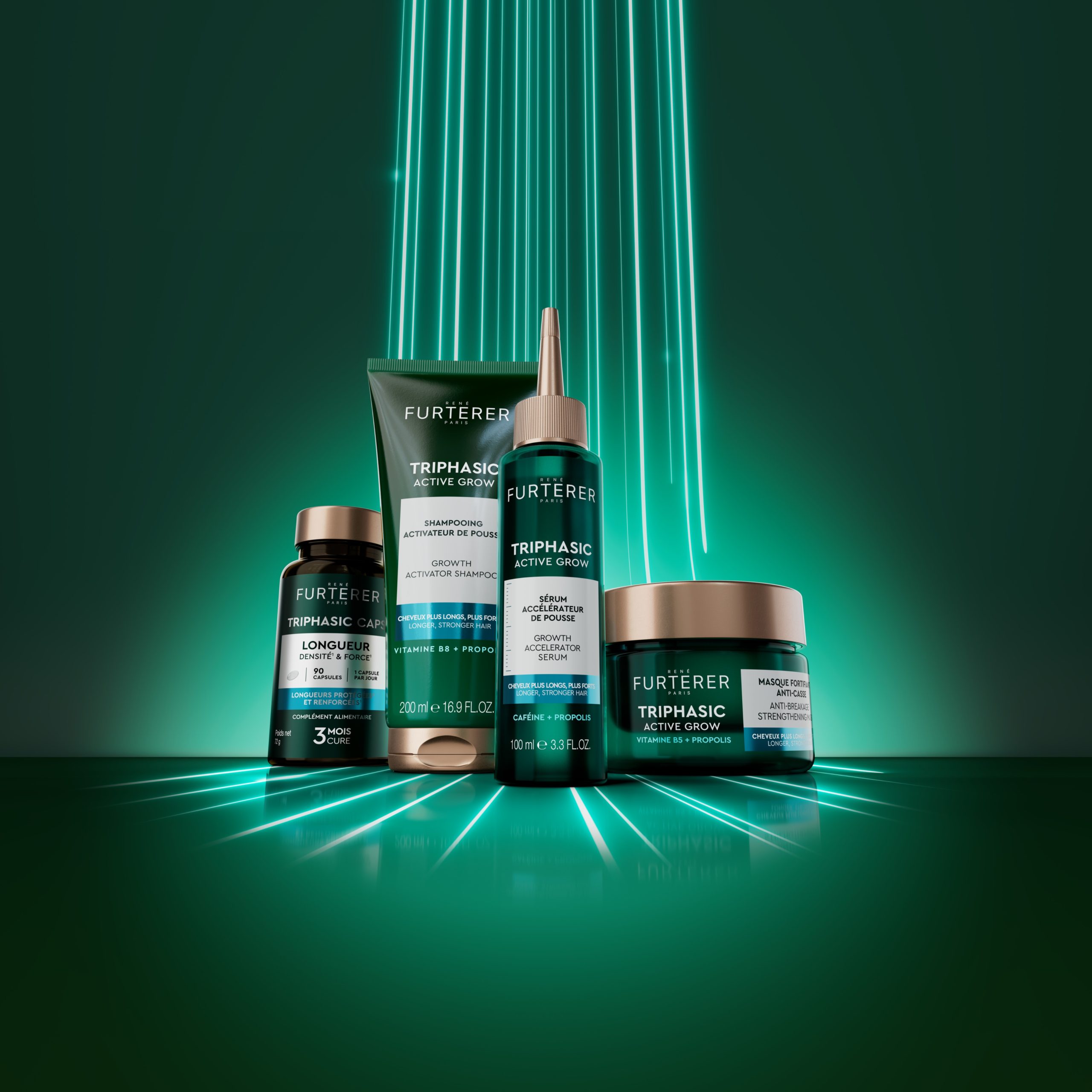 Se ao sérum, juntar o Champô Ativador de Crescimento, a Máscara Fortificante Antiquebra e as Triphasic Caps Comprimento da gama Triphasic Active Grow, o cabelo recebe tudo aquilo de que precisa: limpeza direcionada ao couro cabeludo, fortalecimento do fio e estímulo contínuo ao crescimento.