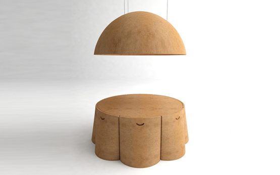 Dimensões: Candeeiro (175 x 75 cm), mesa (168 x 75 cm) e cadeiras (66 x 61 x 75 cm)