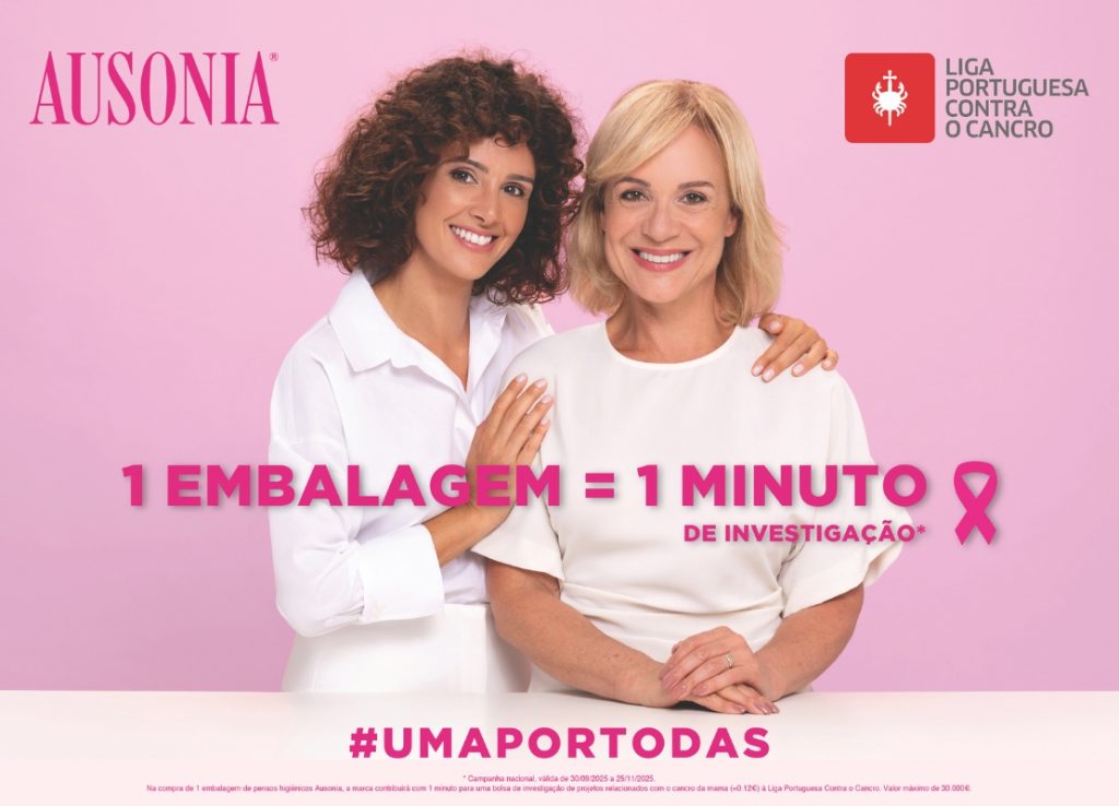 Entre 29 de setembro e 30 de novembro de 2025, cada embalagem AUSONIA comprada transforma-se em um minuto de investigação dedicado ao cancro da mama, revertendo em apoio direto à Liga Portuguesa Contra o Cancro (LPCC).