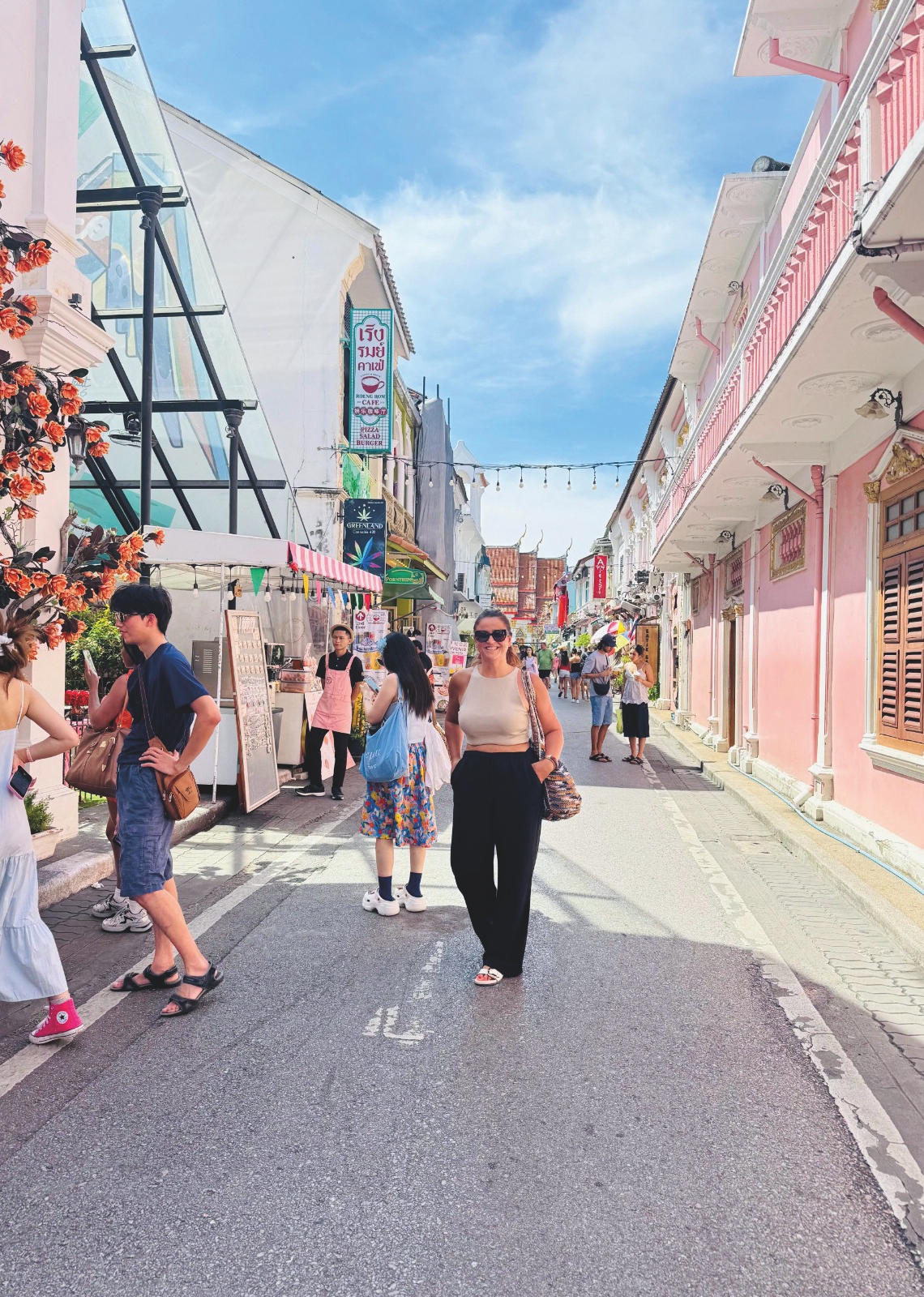 A poucos passos está Phuket Old Town, com as suas ruas coloridas de influência sino-portuguesa, mercados noturnos animados e lojas de artesanato local. É o coração cultural da ilha, onde tradição e modernidade convivem de forma encantadora. Adorámos!
