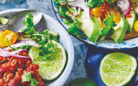 4. Sirva o chili com carne, com a salada e os quartos de lima