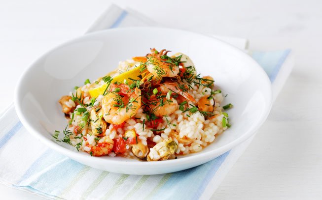 Este risotto de frutos do mar é para quem adora sabores frescos