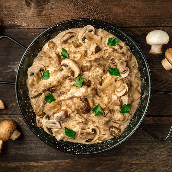 Sabia que o strogonoff é uma receita proveniente da Rússia? Guarde esta curiosidade para partilhar com os seus amigos na noite de passagem de ano. Para preparar esta versão, precisa de ingredientes como carne de vitela em tiras, vinho do Porto ou café. Fica pronta em 20 minutos.