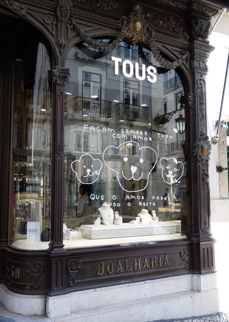 O resultado está à vista (e que bem) na vitrine da loja, com frases e ilustrações do artista português, que reinterpretou ícones pela qual a marca é conhecida, como o urso e o coração.