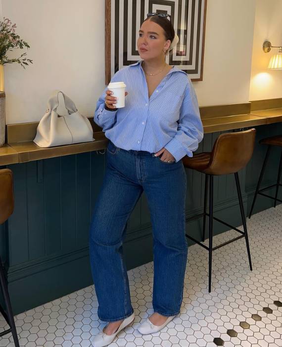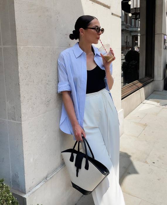 • E porque não usar a camisa azul com um fato? Acrescente uns sapatos de salto alto, uma carteira a combinar, e está pronta para ir trabalhar (ou passear)!