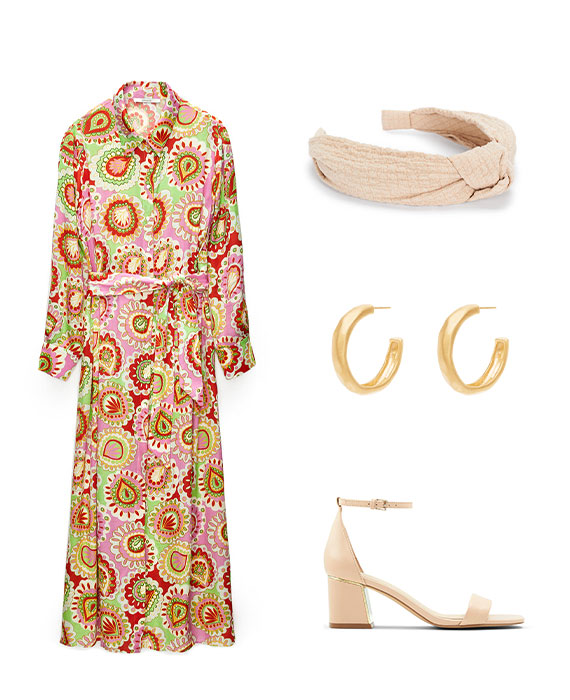 Um conjunto já a pensar na meia estação que se aproxima e que, ainda assim, consegue ser usado nas noites mais frescas de verão, pelo tecido leve e fino. O padrão geométrico foi um dos mais vistos durante esta década e volta agora em força. Conjugue-o com acessórios de um tom apenas.