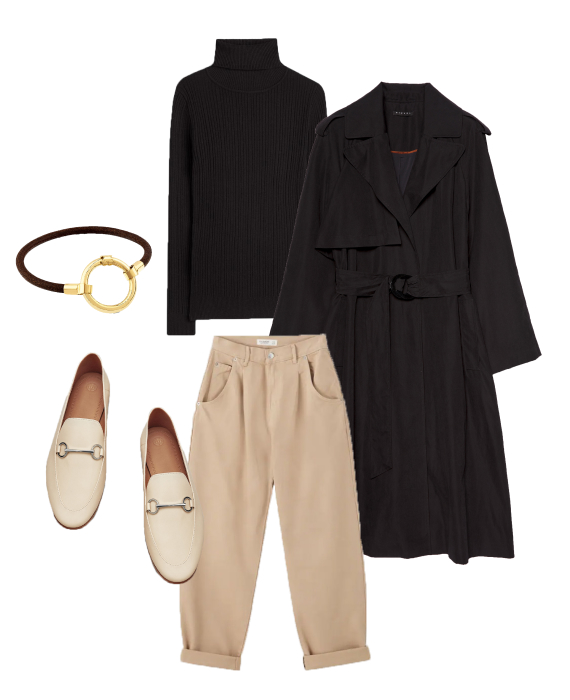 Mesmo que escolha umas slouchy em tecidos como ganga ou sarja, consegue fazer algumas combinações mais requintadas. Escolha uma camisola de gola alta justa, uns mocassins e complemente com acessórios em dourado.