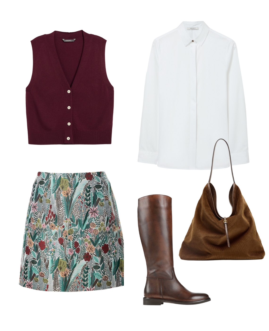 Para uma girls night out ou um cocktail pós trabalho, este é o look perfeito. A combinação minissaia e botas de cano alto é infalível e resulta ainda melhor com um colete ou top de gola alta , com uma camisa branca por baixo, tornando o conjunto mais elegante, mas, ainda assim, divertido.