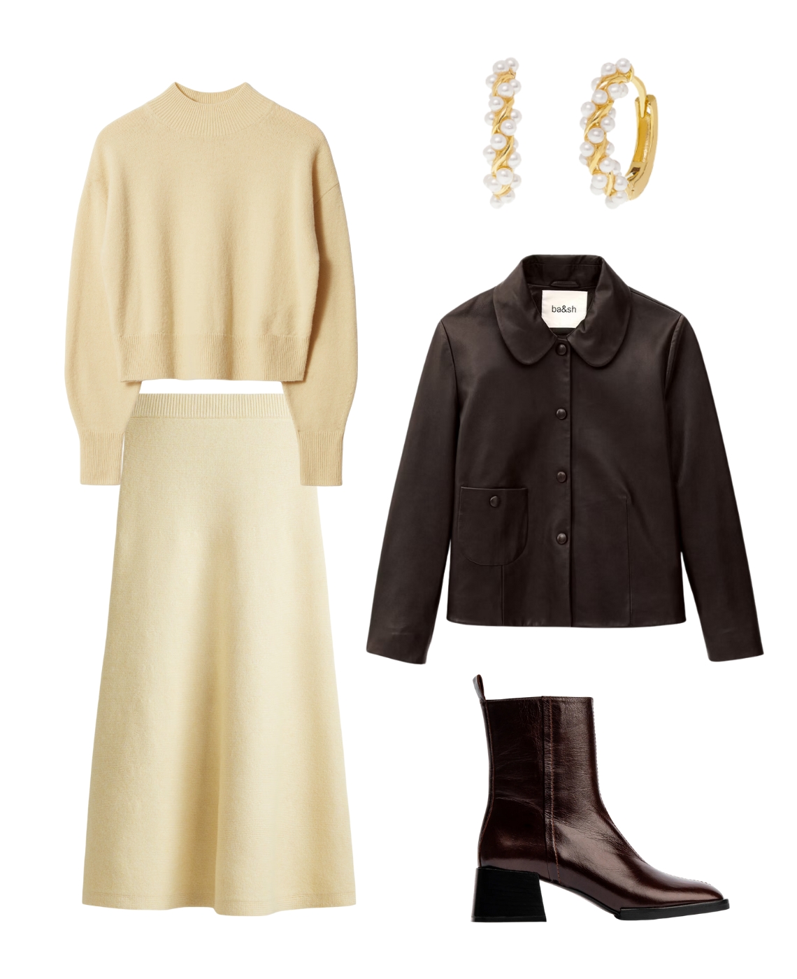 Os tons pastel não vão sair de moda tão cedo. Este conjunto de camisola e saia em malha canelada são a prova. Combine-o com um casaco oversized para se sentir aconchegada e abraçada nos dias mais frios.